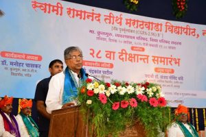सोलापूर : पुण्यश्लोक अहिल्यादेवी होळकर सोलापूर विद्यापीठाच्या दीक्षांत समारंभात विद्यार्थ्यांना पदवी प्रदान करून त्यांचा सन्मान करताना उच्च व तंत्र शिक्षण...
