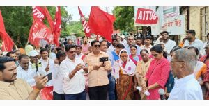 केंद्रीय गृहमंत्री अमित शहांनी डॉ. बाबासाहेब आंबेडकर यांचा अवमान केल्या विरोधात भारतीय कम्युनिस्ट पक्षाकडून निदर्शने आंदोलन.
