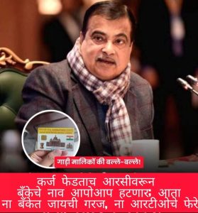B1न्यूज मराठी नेटवर्क मुंबई : वाहनधारकांसाठी दिलासादायक बातमी असून, केंद्र सरकारने वाहन कर्जाशी संबंधित प्रक्रिया अधिक सुलभ करण्यासाठी डिजिटल प्रणाली...