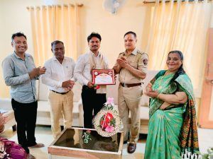 माढा पोलीस स्टेशनचे सपोनि नेताजी बंडगर यांना राष्ट्रपती शौर्य पुरस्कार मिळाल्याबद्दल सत्कार करताना आदर्श शिक्षक राजेंद्र गुंड सर व कवी...