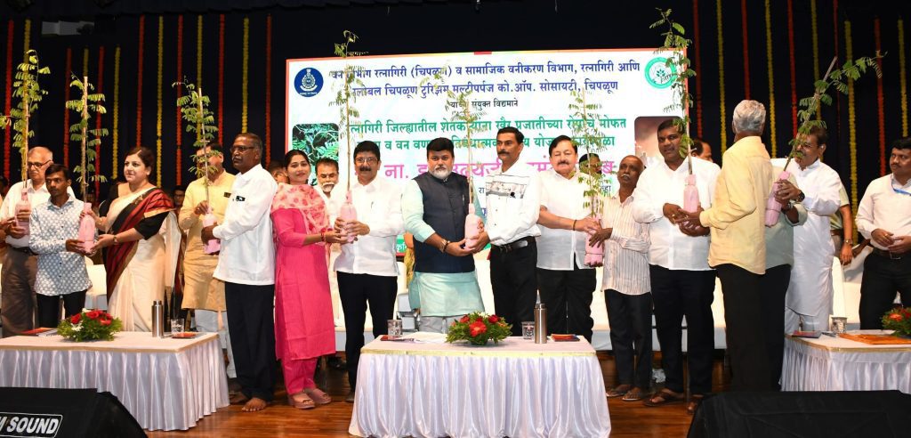 चिपळूण येथील इंदिरा गांधी सांस्कृतिक सभागृहात वन विभाग व सामाजिक वनीकरण विभाग यांच्या संयुक्त विद्यमाने जिल्ह्यातील शेतकऱ्यांना खैर रोपांचे मोफत वाटप व वणवा प्रतिबंधात्मक उपाययोजना कार्यक्रम झाला. त्यावेळी पालकमंत्री बोलत होते. कार्यक्रमास आमदार शेखर निकम, माजी आमदार सदानंद चव्हाण, रमेश कदम, जिल्हा अधिक्षक कृषी अधिकारी शिवकुमार सदाफुले, उपवन सरंक्षक गिरिजा देसाई, विभागीय वन अधिकारी रणजीत गायकवाड, सहाय्यक वन संरक्षक प्रियांका लगड आदी उपस्थित होते.