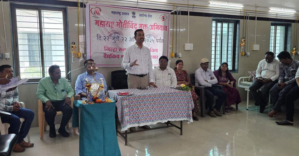 नंदुरबार : राज्य शासनाच्या सार्वजनिक आरोग्य व कुटुंब कल्याण विभागाच्या निर्देशानुसार “मोतीबिंदू मुक्त महाराष्ट्र” ही विशेष मोहीम २२ जुलै ते २२ ऑगस्ट २०२५ या कालावधीत राबवण्यात येत आहे. जिल्हा शल्यचिकित्सक डॉ. विनय सोनवणे यांच्या मार्गदर्शनाखाली नंदुरबार जिल्ह्यातही या मोहिमेची प्रभावी अंमलबजावणी सुरू झाली आहे.