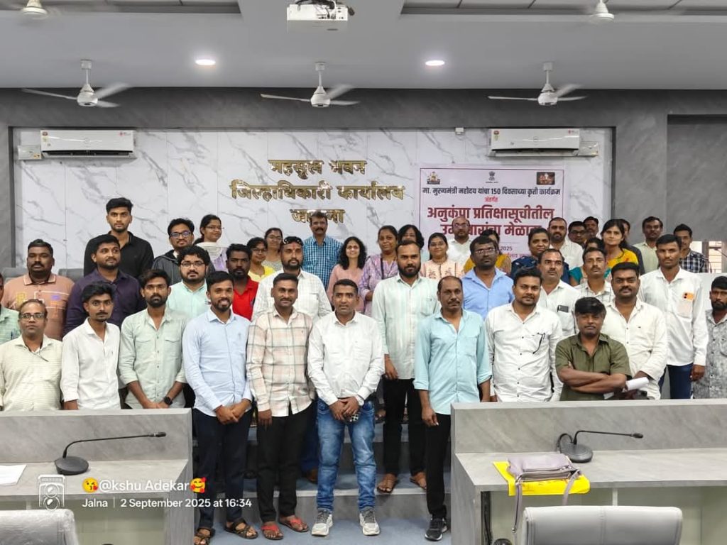 जालना दि.2 : मुख्यमंत्री देवेंद्र फडणवीस यांच्या 150 दिवसांच्या कार्यक्रमांतर्गत देण्यात आलेल्या एकुण 1 ते 9 टप्यांमधील टप्पा क्र. 5 ( मेळावा घेणे व शिफारस करणे) पूर्ण करण्याच्या अनुषंगाने (दि. 2) आज जिल्हाधिकारी कार्यालय, जालना येथे प्रतिक्षासूचीतील सर्व अनुकंपाधारक उमेदवार यांचा मेळावा घेवुन रिक्तपदांसाठी पसंतीक्रम विहित नमून्यामध्ये घेण्यात आले.