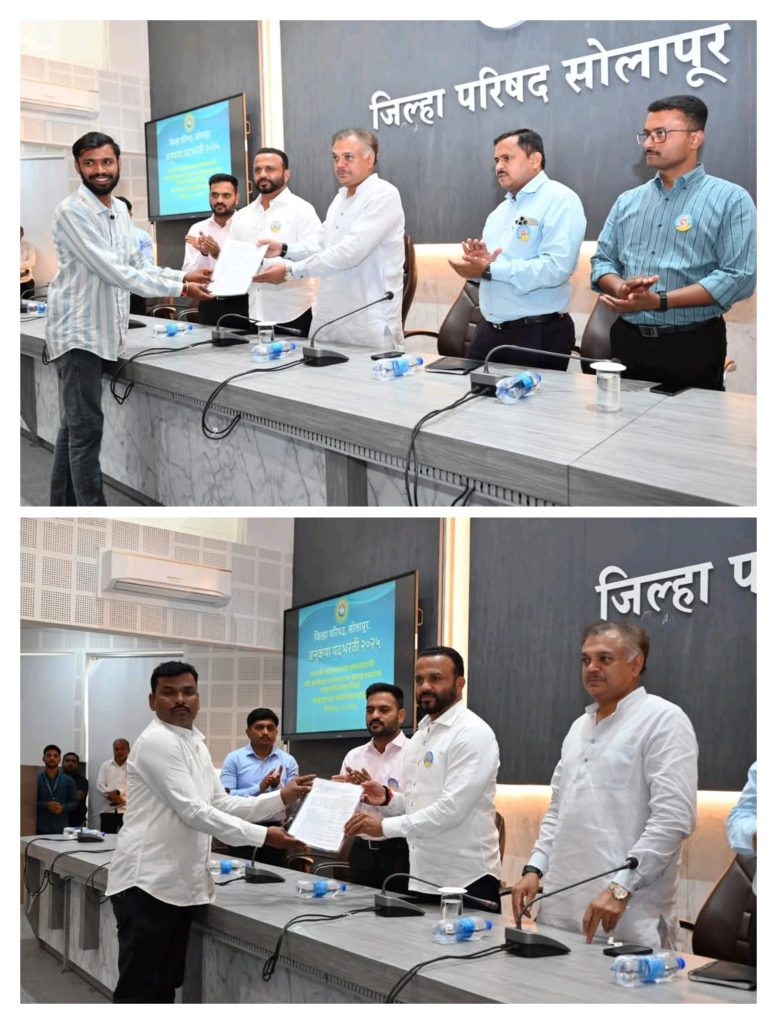 सोलापूर दि.25 : सोलापूर – जिल्हा परिषदे सोलापूर चा वतीने 44 कर्मचाऱ्यांना अनुकंपा तत्वावर नियुक्तीचे आदेश राज्याचे ग्रामविकास मंत्री जयकुमार गोरे यांचे हस्ते प्रदान करणेत आले.