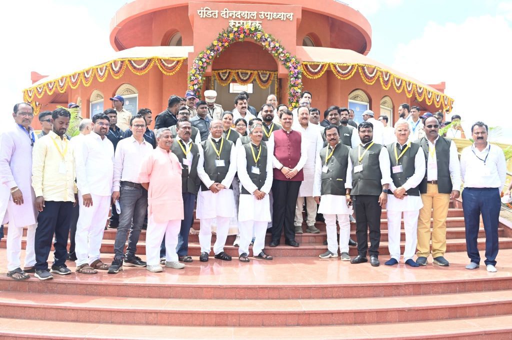 प्रारंभी पंडित दीनदयाल उपाध्याय यांच्या स्मारकस्थळी मुख्यमंत्री यांनी भेट देऊन पंडित दीनदयालजींच्या पुतळ्यास पुष्प व खादीचा हार वाहून विनम्र अभिवादन केले.यावेळी मूर्तीकार सुजीत गौड व सौ. स्वाती सुजीत गौड यांचा मुख्यमंत्र्यांच्या हस्ते सत्कार करण्यात आला.
