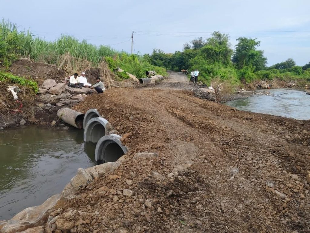 काटेगाव येथील पुलाच्या नळकांड्या वाहून गेलेल्या होत्या, त्या पुन्हा नव्याने टाकून रस्ता वाहतुकीस सुरू केला