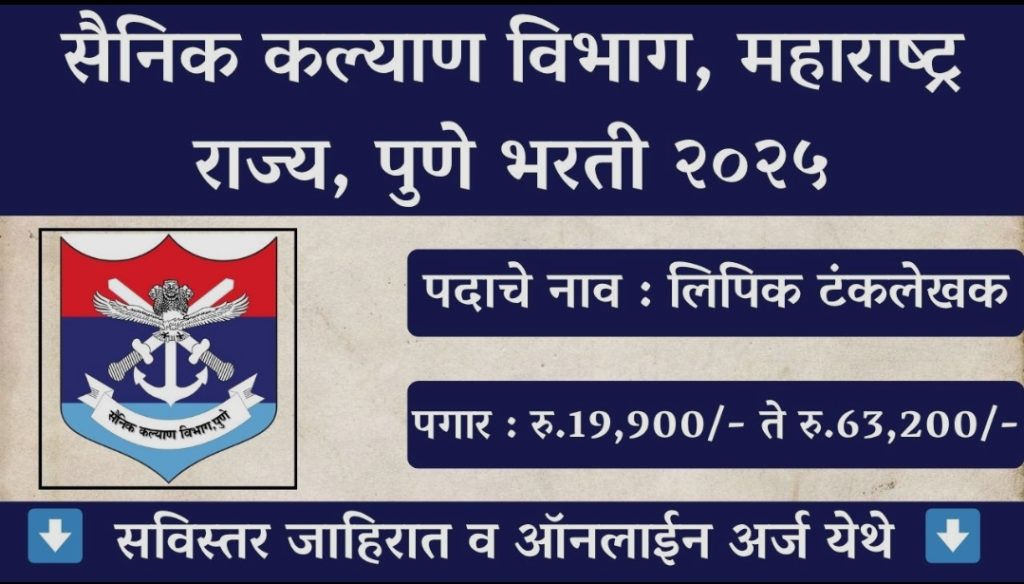 सैनिक कल्याण विभागामध्ये लिपिक टंकलेखक (गट-क) पदांची भरती होणार ऑनलाईन पद्धतीने