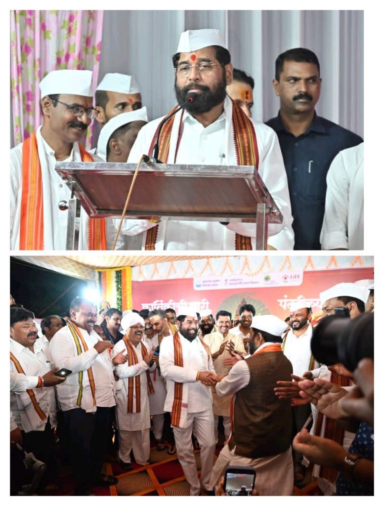 पंढरपूर येथील शासकीय विश्रामगृहाच्या परिसरात महाराष्ट्र प्रदूषण नियंत्रण मंडळ, पर्यावरण विभाग व महाराष्ट्र सांस्कृतिक कला मंच ठाणे यांच्या संयुक्त विद्यमाने आयोजित ‘कार्तिकीची वारी पंढरीच्या दारी’ या उपक्रमाच्या समारोपप्रसंगी उपमुख्यमंत्री शिंदे बोलत होते. यावेळी ग्रामविकास व पंचायतराज मंत्री तथा पालकमंत्री जयकुमार गोरे, रोजगार हमी योजना, फलोत्पादन मंत्री भरत गोगावले, गृह (शहरे), महसूल राज्यमंत्री योगेश कदम, प्रदूषण नियंत्रण मंडळाचे अध्यक्ष सिद्धेश कदम, आमदार समाधान आवताडे, आमदार तानाजी सावंत, आमदार राजू खरे, आमदार अभिजीत पाटील, माजी आमदार शहाजी बापू पाटील, जिल्हाधिकारी कुमार आशीर्वाद, मुख्य कार्यकारी अधिकारी कुलदीप जंगम, प्रदूषण नियंत्रण मंडळाचे सचिव एम. देवेंद्र सिंह यांच्यासह अन्य मान्यवर उपस्थित होते.