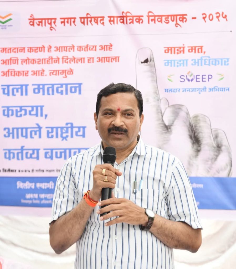 छत्रपती संभाजीनगर, दि.२८ : लोकशाही बळकट करण्यासाठी मतदान प्रक्रियेत नागरिकांचा सहभाग आवश्यक आहे. त्यासाठी अधिकाधिक लोकांनी आपला मतदानाचा हक्क बजवावा,असे आवाहन जिल्हाधिकारी दिलीप स्वामी यांनी आज वैजापूर येथे केले.