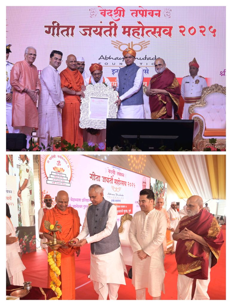 वेदश्री तपोवन मोशी येथे गीता जयंती महोत्सवाला राज्यपाल आचार्य देवव्रत यांची उपस्थिती