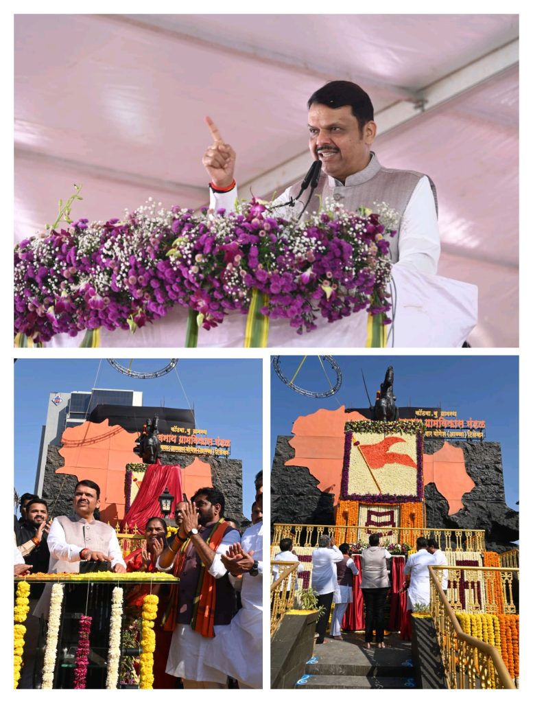 मुख्यमंत्र्याचे हस्ते छत्रपती शिवाजी महाराज यांच्या अश्वारुढ पुतळ्याचे लोकार्पण