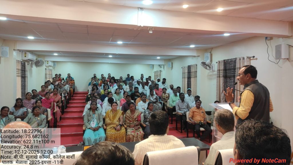 बार्शी : येथील बी .पी .सुलाखे कॉमर्स कॉलेजमध्ये दिनांक बी .पी .सुलाखे कॉमर्स कॉलेज कॉलेजमध्ये पालक शिक्षक मेळाव्याचे आयोजन 16 डिसेंबर 2025 रोजी इयत्ता अकरावी कला व वाणिज्य व दिनांक 17 डिसेंबर 2025 रोजी इयत्ता बारावी कला व वाणिज्य शाखेकडील शिकणाऱ्या विद्यार्थ्यांचा पालक मेळावा आयोजित करण्यात आला होता या कार्यक्रमाला प्रमुख पाहुणे म्हणून शिक्षणशास्त्र महाविद्यालयाचे प्राचार्य डॉ. विष्णू पांडुरंग शिखरे व वाणिज्य विभाग प्रमुख प्रा. किरण चपटे सर लाभले होते. तर अध्यक्षस्थानी महाविद्यालयाचे प्राचार्य डॉ.एस बी करंडे सर हे उपस्थित होते.