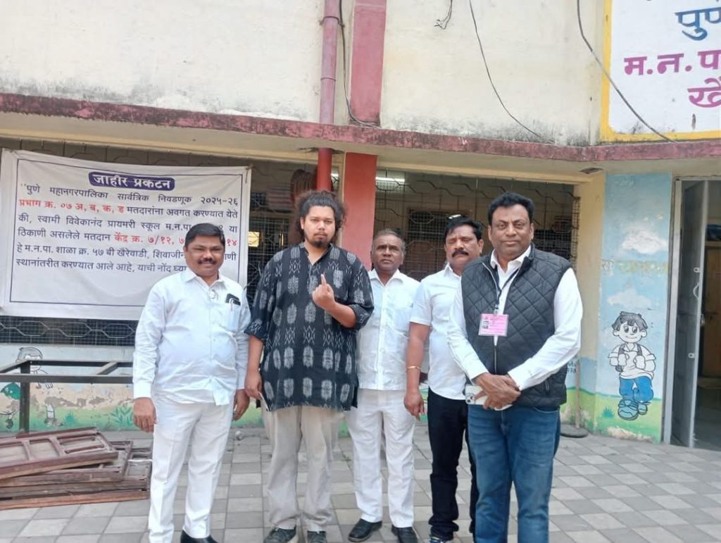 पुणे : लोकशाहीच्या उत्सवात आपला सहभाग नोंदवत वंचित बहुजन आघाडीचे युवा नेते सुजात आंबेडकर यांनी आज पुणे येथे आपला मतदानाचा हक्क बजावला. पुण्यातील प्रभाग क्रमांक ७ मधील मतदान केंद्रावर जाऊन त्यांनी आपले मत नोंदवले. मतदान केल्यानंतर प्रसारमाध्यमांशी संवाद साधताना सुजात आंबेडकर यांनी सर्व नागरिकांना, विशेषतः तरुणांना घराबाहेर पडून मतदान करण्याचे आवाहन केले.