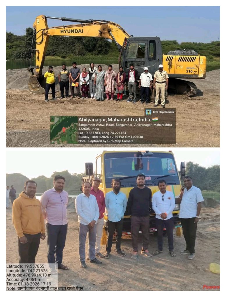 २. प्रवरा नदीपात्र (मौजे रायते): नदीपात्रात अवैध उत्खनन करणारे एक पोकलेन (Poclain) मशीन जप्त करून पोलीस कॉलनी येथे जमा करण्यात आले आहे. संबंधित वाहन मालक तन्वीर शेख यांच्यावर गुन्हा दाखल करण्याची प्रक्रिया सुरू आहे.