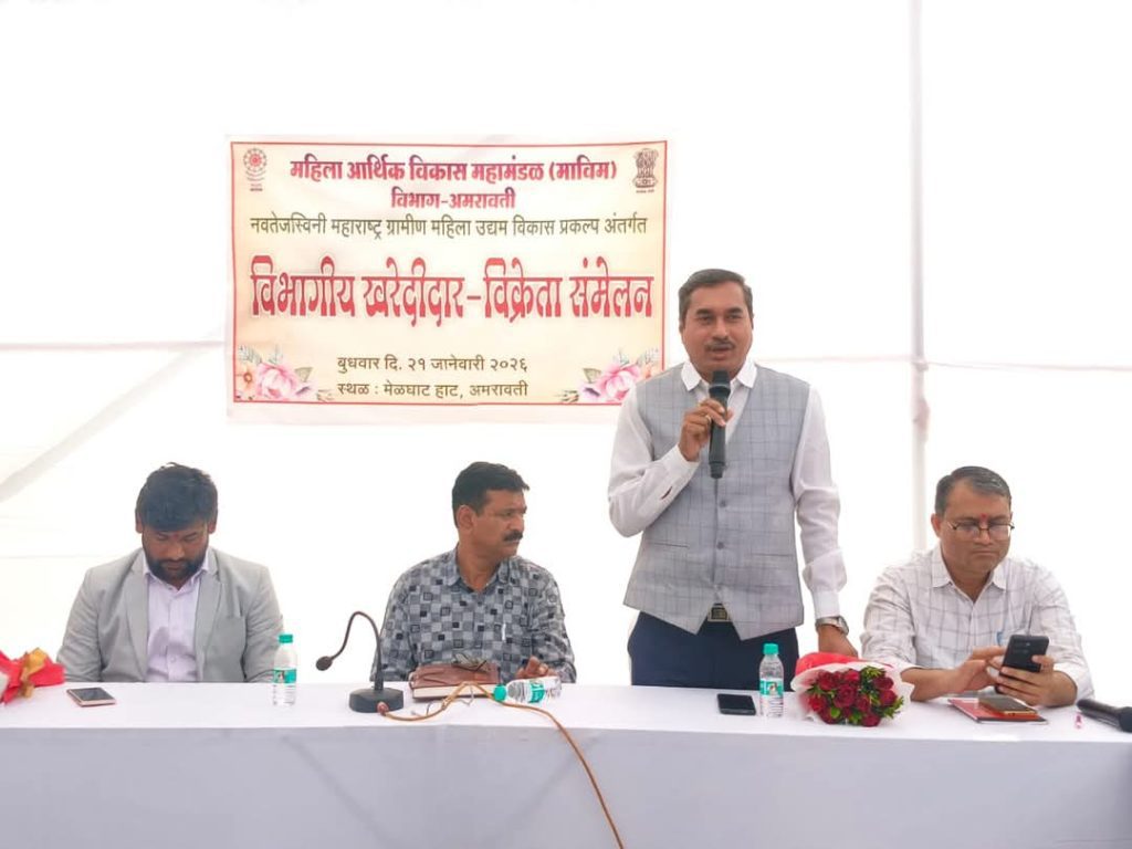 अमरावती, दि. 22 : महिला आर्थिक विकास महामंडळाच्या नवतेजस्विनी प्रकल्पांतर्गत मेळघाट हाट येथे जिल्हास्तरीय खरेदीदार-विक्रेता संमेलन यशस्वीरीत्या पार पडले. स्वयंसहाय्य महिला बचतगटांच्या उत्पादीत उत्पादनांना बाजारपेठ व योग्य दर मिळावा, तसेच विक्रीच्या संधी उपलब्ध व्हाव्यात यासाठी संमेलन घेण्यात आले. जिल्हा अधीक्षक कृषी अधिकारी राहुल सातपुते, विभागीय सल्लागार केशव पवार, युनिवर्स एक्स्पोर्ट दुबईचे संचालक प्रवीण वानखडे, स्मार्टचे नोडल अधिकारी विवेक टेकाडे, विभागीय व्यवसाय विकास सल्लागार पवन देशमुख, वरिष्ठ जिल्हा समन्वय अधिकारी डॉ. रंजन वानखेडे, जिल्हा समन्वय अधिकारी राजेश नागपुरे, वर्षा खोब्रागडे, बाळासाहेब झिंझाडे, सहा जिल्हा समन्वय अधिकारी रामगोपाल साहू आदी उपस्थित होते.