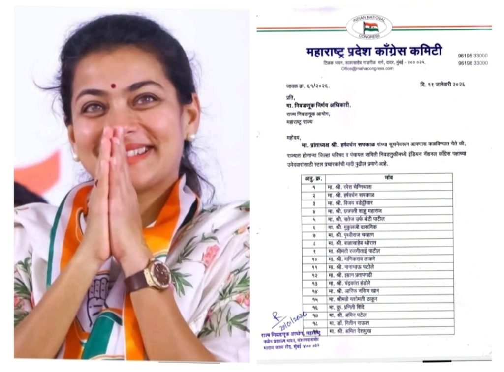 मुंबई : राज्यातील १२ जिल्हा परिषद व १२५ पंचायत समिती निवडणुकीसाठी महाराष्ट्र प्रदेश काँग्रेस कमिटीने ४० स्टार प्रचारकांची यादी जाहीर केली आहे. सोलापूरच्या खासदार प्रणिती शिंदे यांचा स्टार प्रचारकांच्या यादीत समावेश आहे.