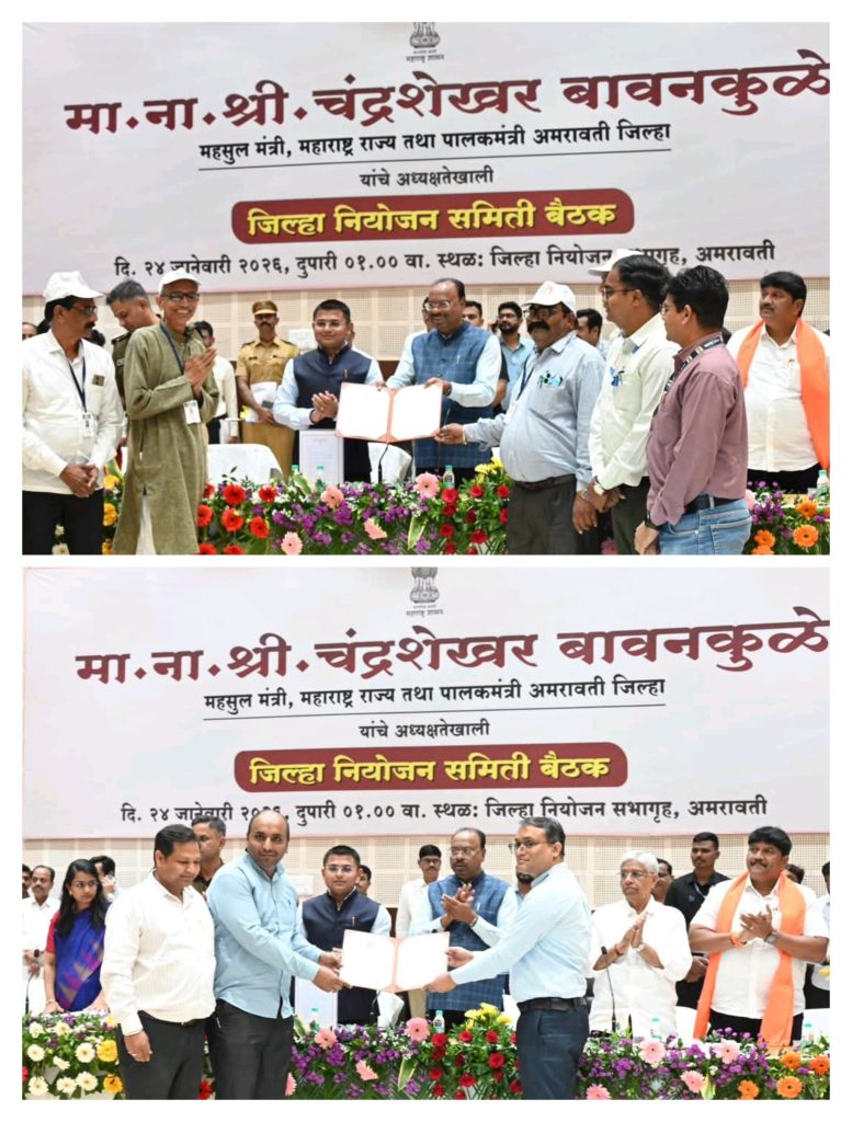 जिल्हा प्रशासन आणि ‘हार्डकॅसल ॲग्रोटेक’ यांच्यात ‘एआय’ आधारित शेतीसाठी सामंजस्य करार यावेळी करण्यात आला. या उपक्रमांतर्गत वरुड, मोर्शी, चांदूर बाजार आणि अचलपूर तालुक्यांतील १६० एकर क्षेत्रावर कृत्रिम बुद्धिमत्ता आणि उपग्रह प्रतिमांच्या मदतीने फळगळ व कीड नियंत्रण केले जाईल. ४२ लाख रुपयांच्या या प्रकल्पामुळे हवामान बदलाच्या संकटात संत्रा उत्पादकांना अचूक शेतीचे पाठबळ मिळून उत्पादकता वाढण्यास मदत होणार आहे. तसेच पुण्यश्लोक अहिल्यादेवी होळकर शेत जोड रस्ते व जल पुनर्भरण योजनेंतर्गत अशासकीय संस्थेच्या माध्यमातून शेत जोड रस्ते तयार करण्यासाठी जिल्हाधिकारी कार्यालय व लोक जागर स्वयंसेवी संस्था, अंजनगाव सुर्जी यांच्यासोबत सामंजस्य करार करण्यात आला.