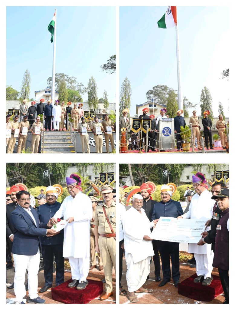 77 वा प्रजासत्ताक दिन उत्साहात साजरा ,पालकमंत्री चंद्रकांत पाटील यांच्याहस्ते मुख्य शासकीय ध्वजारोहण