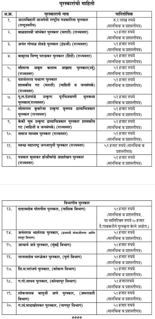 राज्य शासनाच्या उत्कृष्ट पत्रकारिता पुरस्कार – 2025 साठी प्रवेशिका पाठविण्याचे आवाहन