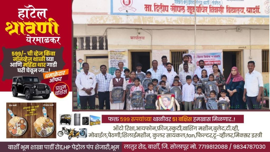 यावेळी विद्यालयाच्या मुख्याध्यापिका रिजवाना शेख, वाचा उपचारतज्ञ विठ्ठल शिंदे, भंडारे सर,वसतिगृह अधीक्षक योगेश जाधव, हागवने, काझी, सौ. गव्हाने आदी उपस्थित होते. या कार्यक्रमासाठी अॅड. विवेक गजशिव,अतिश बनसोडे, पंकज खूने, निखिल लंकेश्वर यांनी परिश्रम घेतले.