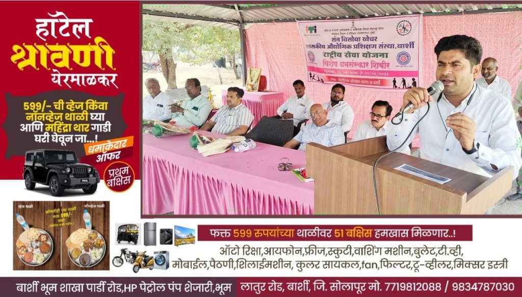 बार्शी येथे औद्योगिक प्रशिक्षण संस्थेचा विशेष श्रमसंस्कार शिबिराला प्रारंभ!